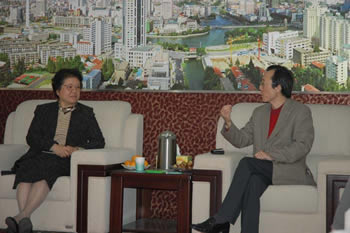 日,上海紡織控股(集團(tuán))公司副董事長(zhǎng)倪志華一行來通訪問。我司董事長(zhǎng)楊揚(yáng)、總經(jīng)理徐憲華會(huì)見來賓,并交換了各自情況。