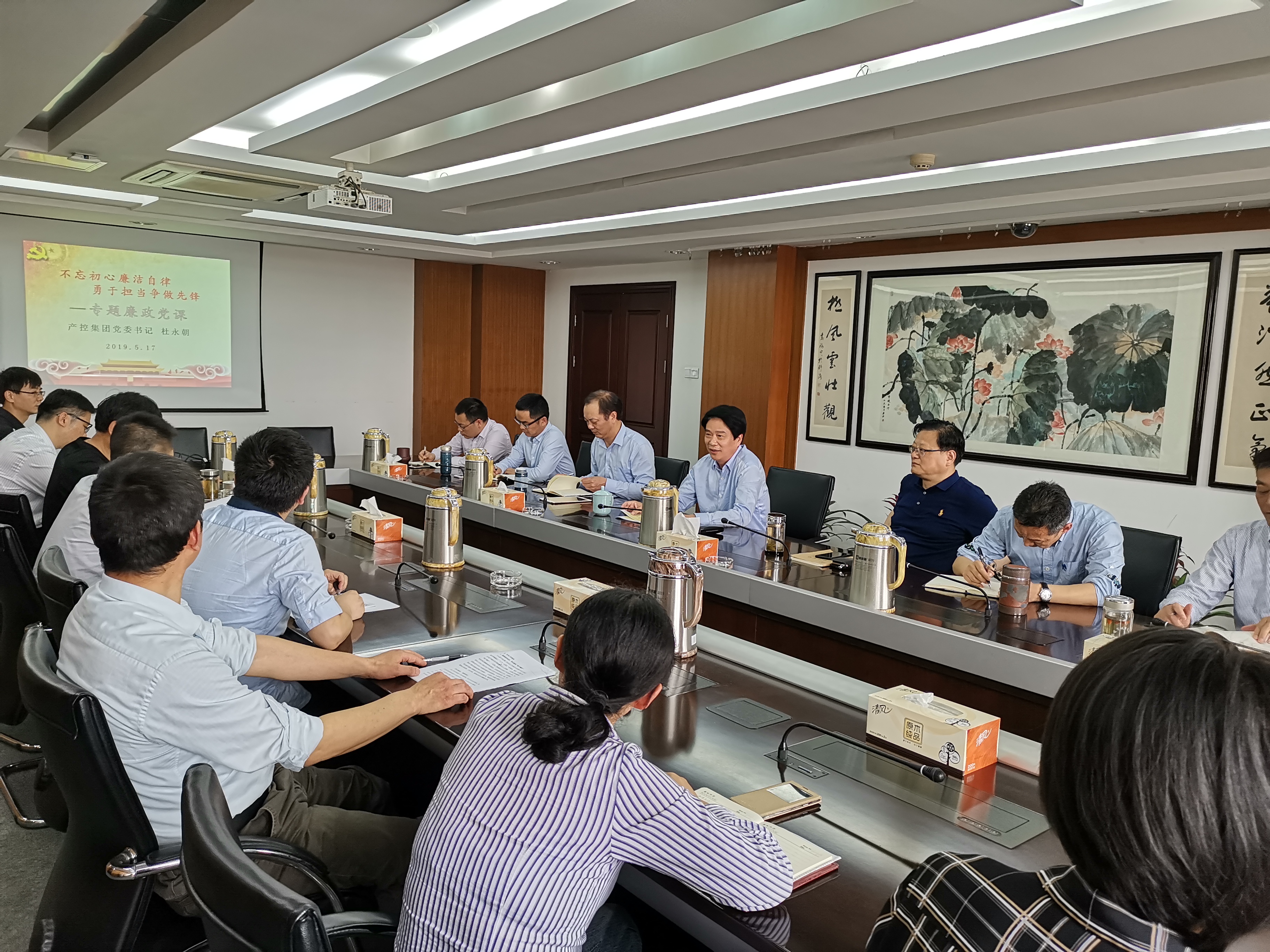 今年是我市第十二個“510”思廉日,為進一步加強黨員干部職工的廉潔從業意識,5月17日,產控集團黨委書記杜永朝為直屬支部全體黨員上了一堂以“不忘初心廉潔自律,勇于擔當爭做先鋒”為主題的廉政黨課。