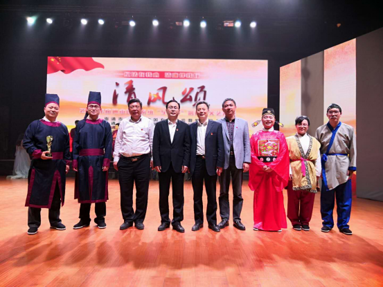 南通產業技術研究院有限公司選送的小品《審舅舅》以古代縣官面對情與法的沖突如何進行抉擇為背景展開故事,以輕松詼諧的表演講述法不容情的道理,寓意深刻,讓現場觀眾在歡聲笑語中領會為官一任必須忠誠、干凈、擔當,獲得陣陣喝彩。
