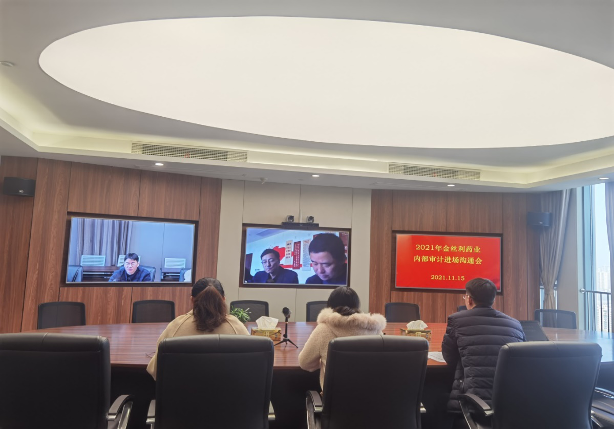 11月15日上午,在精華制藥集團(tuán)視頻會(huì)議室,審計(jì)監(jiān)察部與金絲利藥業(yè)經(jīng)營(yíng)層召開了一場(chǎng)線上內(nèi)部審計(jì)進(jìn)場(chǎng)溝通會(huì)。會(huì)議利用遠(yuǎn)程視頻的形式,與被審單位進(jìn)行非接觸式對(duì)接溝通。