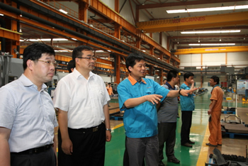 6月11日下午,南通市副市長黃愛軍前來公司視察。在參觀工廠過程中,公司總經理凌衛國向黃副市長一行匯報了公司產品研發及經營情況。黃副市長還仔細詢問了公司的產品技術含量及當前的行業形勢。參觀結束時,黃副市長深有感慨地說:“盡管我對機械是個外行,但看了南通科技的現場,我感覺很舒服!”港閘區委書記沈雷、區長沈紅星等領導陪同視察 。